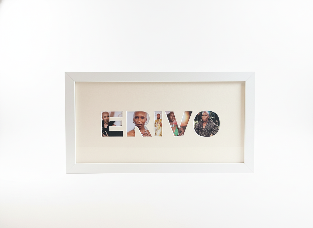 Name Frame in 22mm x 22mm open grain FSC wooden frame. Acrylic 2mm glazing with a white core PH neutral mount board. Ready to hang on the wall. 400mmx200mm image size.